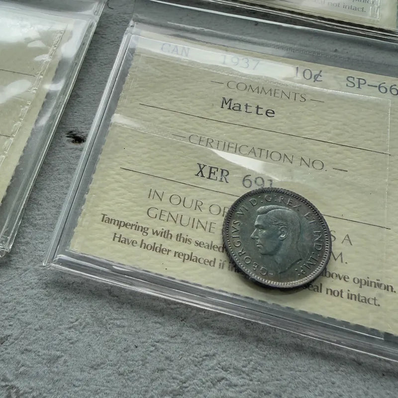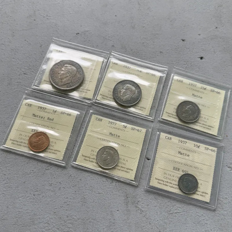Available for sale is a stunning 1937 Specimen 6 coin Set Canada featuring beautiful rainbow toning! The coins are graded ICCS Gem 66 / 67
