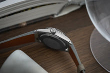 - Bracelet/Strap: Bespoke grey leather band in unworn condition. It features quick release pins in order to easily switch bands