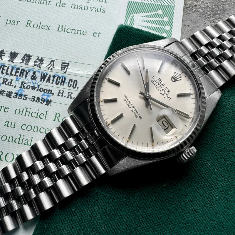 THE DETAILS Case: 36mm Stainless steel case which shows honest signs of wear with no major distractions Dial/Hands: Original Rolex silver dial is in attractive condition. Hands are original and attractive given their age, showing spotting as seen in the photos. Caseback: Original stainless steel case in attractive condition. Movement: Original Rolex automatic winding movement which is currently running +23 seconds per day Bracelet/Strap: Original Rolex stainless steel jubilee bracelet which shows honest signs of wear with no major distractions. The bracelet shows light stretch with the bracelet shown in one of the photos with the maximum stretch. The watch fill fit an 8 inch wrist. The buckle is marked 'A' dating the bracelet correctly to 1976 Crystal: Acrylic in attractive condition, with a few light marks as expected Accessories: The watch comes with original warranty papers and box as seen in the photos