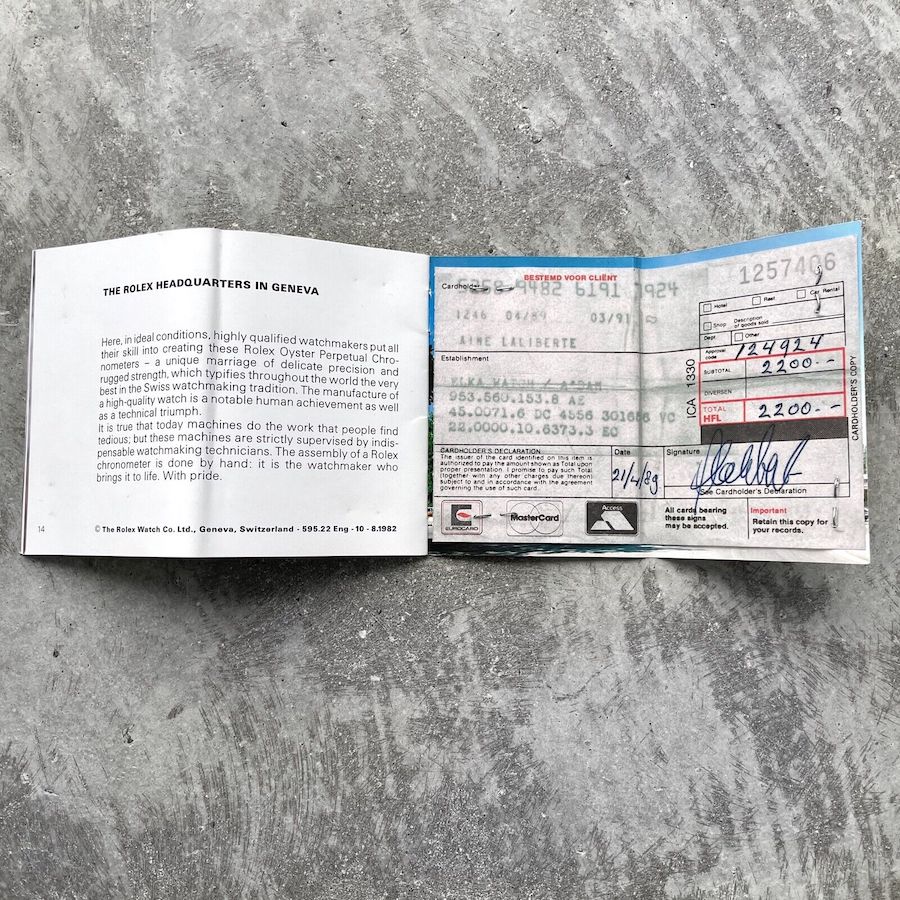Available for sale is a 1985 Rolex GMT Master, reference 16750. This is among Rolex's most iconic designs. This watch comes with a stunning glossy black dial with light patina forming on the markers. The watch comes with the original box, papers, the original plastic crystal, caseback stickers and even the original receipt.The serial number on this watch is 8654455 dating this watch to 1985, the original receipt is from 1989.