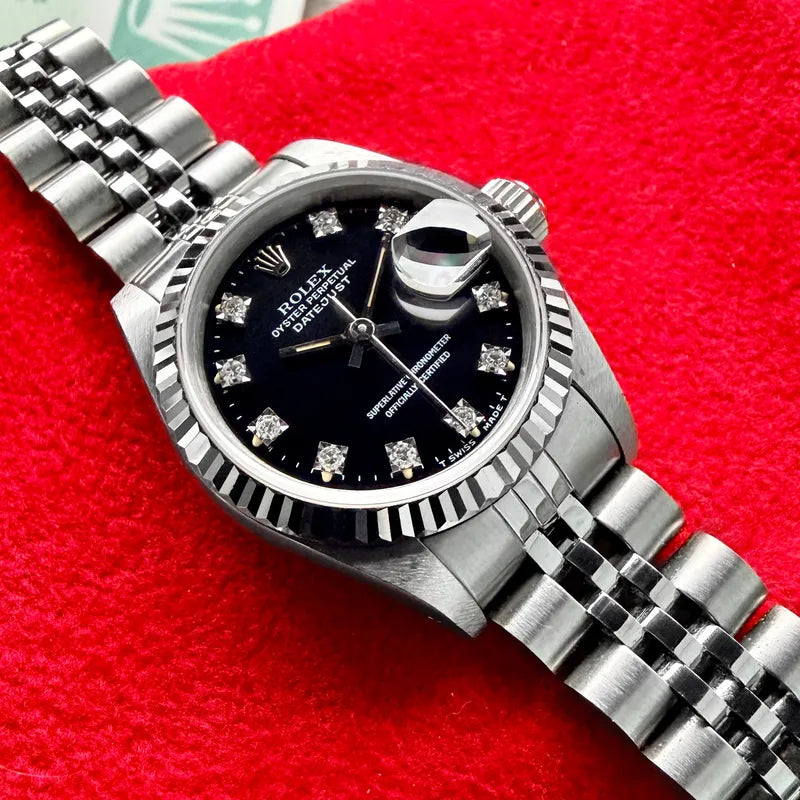Dial/Hands: Original Rolex black dial in stunning condition, it is factory set with diamond markers. Hands are like new as they came from the factory