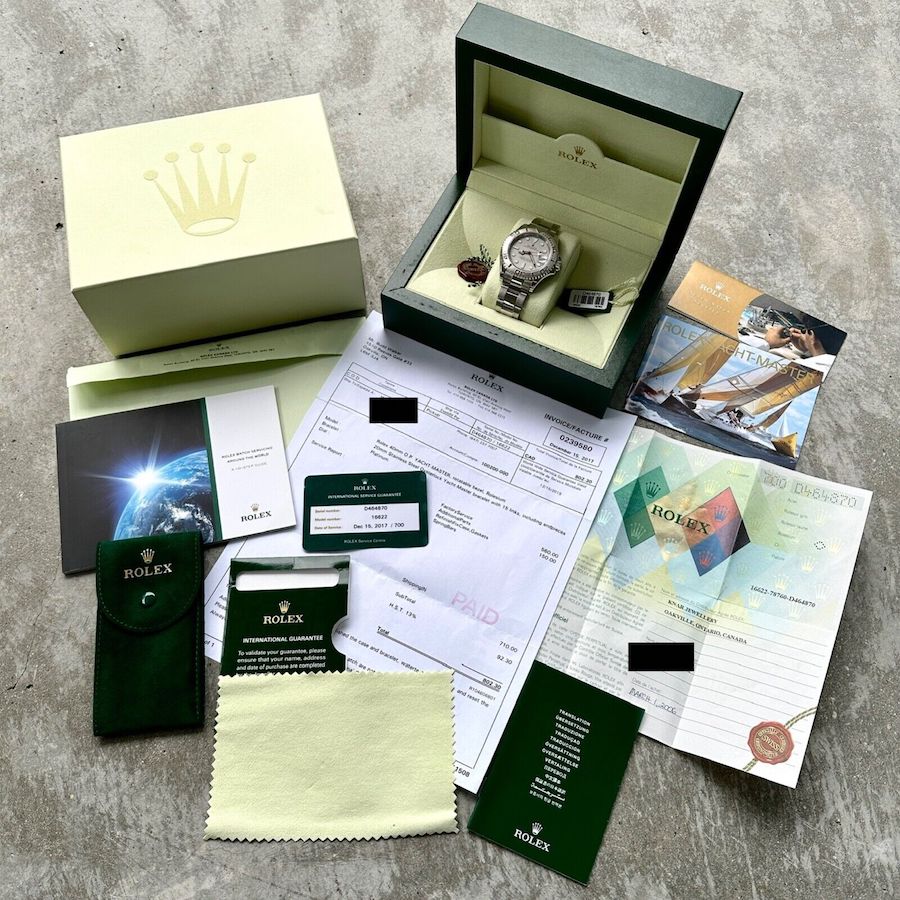 Accessories: This watch comes with box, warranty papers, seal, hangtag, booklets, 2017 Rolex Service card/receipt and everything else seen in the photos.