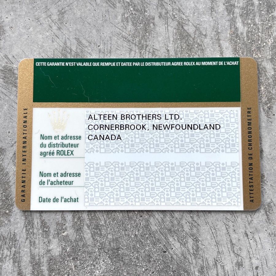 Available for sale is a 2010 Rolex Explorer reference 114600GV. This watch was never sized and retains all original stickers as it came from the AD. It was put away since 2010 and remains in perfect fully stickered condition. The papers are left blank and can be filled in if you choose with your name. It even includes the original price tag of $8300 CAD. The serial of the watch begins with G dating this watch to 2010. The watch has more stickers than one can imagine, Rolex is strict on removing stickers and thus this types of sets will be difficult to come by in the future. A true collector’s set!