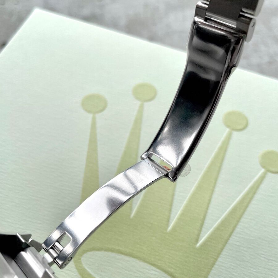 Bracelet/Strap: Factory Rolex Oyster Stainless steel bracelet which has never been sized. The buckle is fully stickered including the side of the buckle and the blades of the buckle. Both sides of the links are stickered