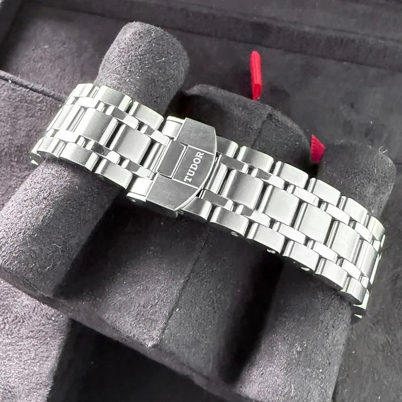 Bracelet/Strap: Factory Tudor Stainless steel bracelet which is in unpolished and nearly unworn condition. The watch will fit an 8inch wrist