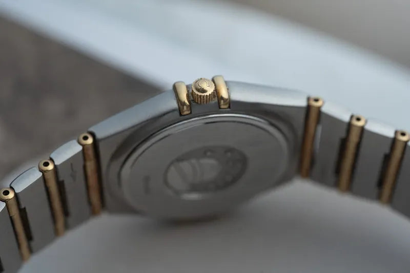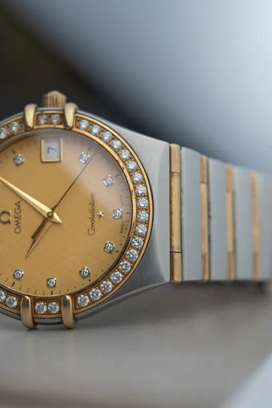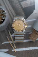 This elegant Omega Constellation, reference 1217.15.00, is a 33.5mm men’s model crafted in stainless steel with 18K gold accents, embodying the perfect balance between sophistication and subtle luxury.