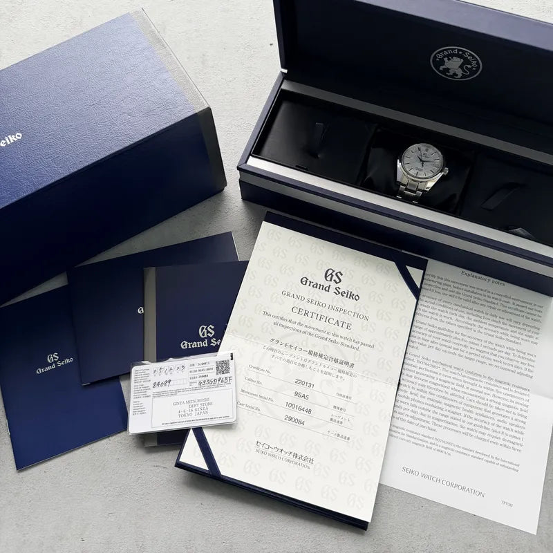 Complete with box and papers, this example combines refined aesthetics with cutting-edge watchmaking, making it an excellent choice for both collectors and first-time Grand Seiko buyers.