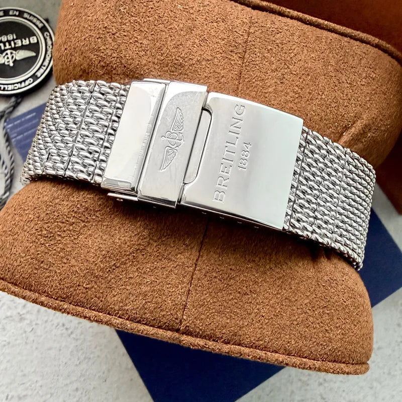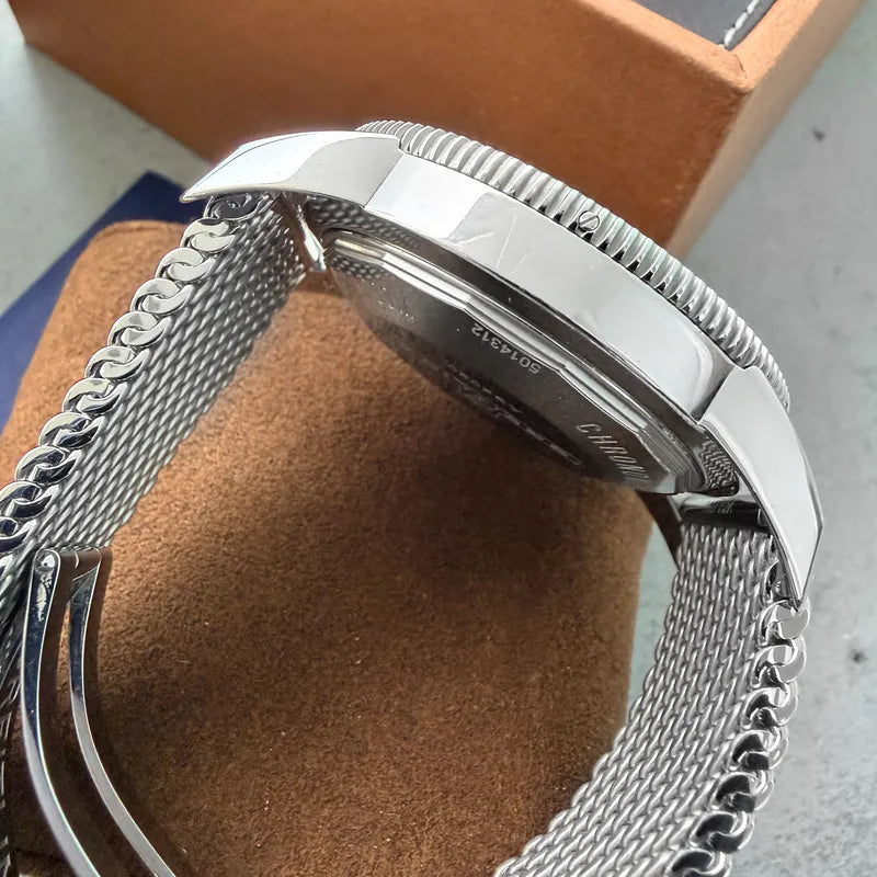 Discover the perfect union of sophisticated style and legendary performance with the Breitling Superocean Heritage AB2020. This timepiece is a statement of elegance and capability, designed for the person who appreciates both classic design and modern precision. Its versatile character transitions effortlessly from a day at the office to a weekend getaway, making it an exceptional accessory for every part of your life. The striking black dial and matching unidirectional bezel create a clean, classic look that is both bold and understated. Paired with the intricate stainless steel mesh bracelet, the watch feels supple and comfortable on the wrist, exuding an undeniable chic.