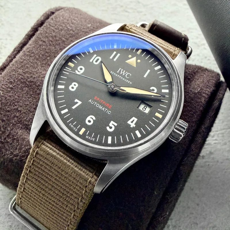Housed in a stainless steel case measuring a well-balanced 39mm, this Spitfire offers exceptional wearability, making it ideal for both everyday use and more refined settings. The size feels authentic to traditional pilot watches—substantial enough to have presence, yet slim and comfortable on the wrist. Paired with a rugged fabric strap and powered by IWC’s reliable automatic movement, the IW326801 is a timeless choice for enthusiasts who value classic pilot watch proportions, purposeful design, and the enduring legacy of IWC’s aviation heritage.