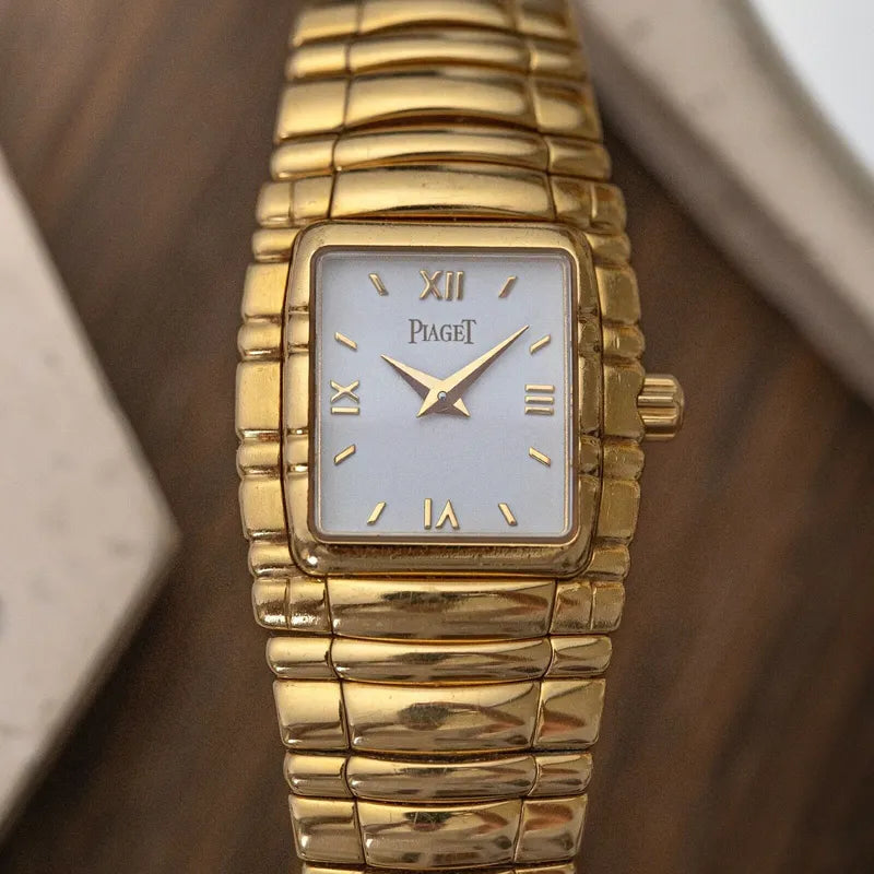 Adorn your wrist with the solid yellow gold Piaget Tanager, a timepiece that not only tells the time but also narrates a story of love, beauty, and timeless elegance. Let this watch be a reminder of cherished moments and captivating memories, a symbol of the enduring bond between luxury and romance that transcends time.