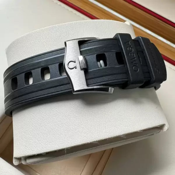 - Bracelet/Strap: Omega Stainless Steel bracelet reference STZ001159 which shows the lightest of signs of wear. The watch also comes with an Omega Green Rubber with a factory Omega stainless steel buckle which is a nice bonus!. The watch will fit an 8 inch wrist.