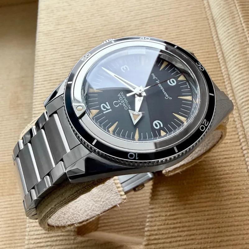 With its perfectly balanced proportions, this modern reissue wears exceptionally well, offering a vintage aesthetic with contemporary build quality and reliability. The homage to the original Seamaster 300 is flawlessly realized, from the classic dial layout and broad arrow hands to the subtle details that collectors truly appreciate.