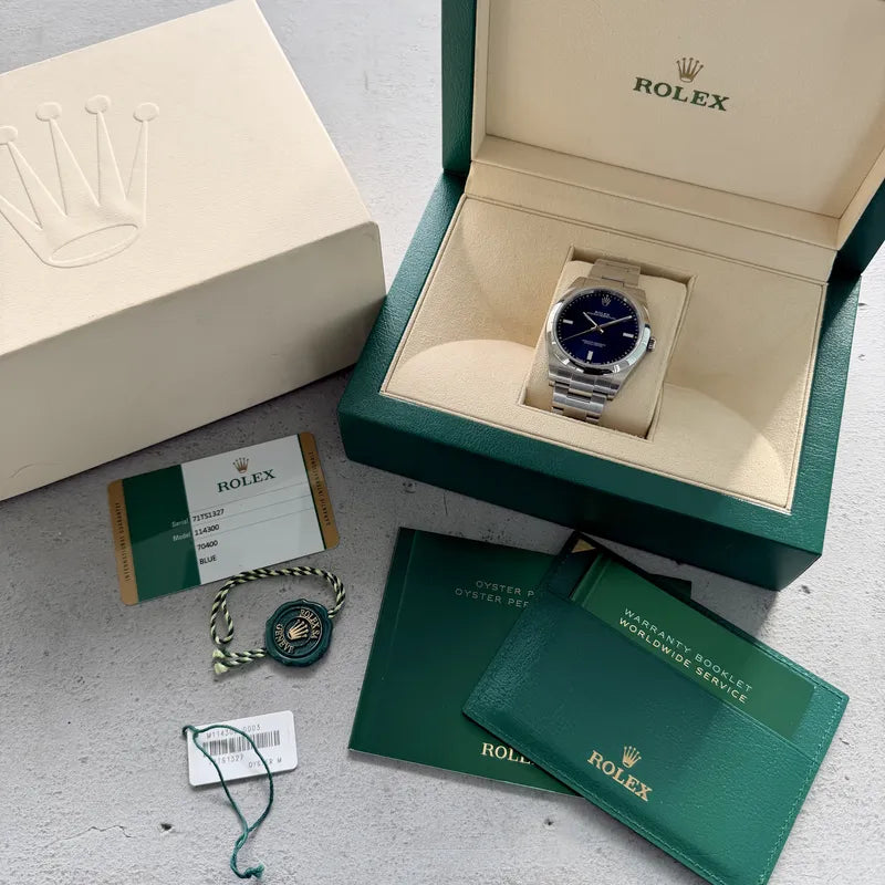 Rolex 39mm Oyster Perpetual 114300 Oyster Blue dial – Box / Papers