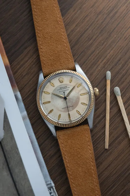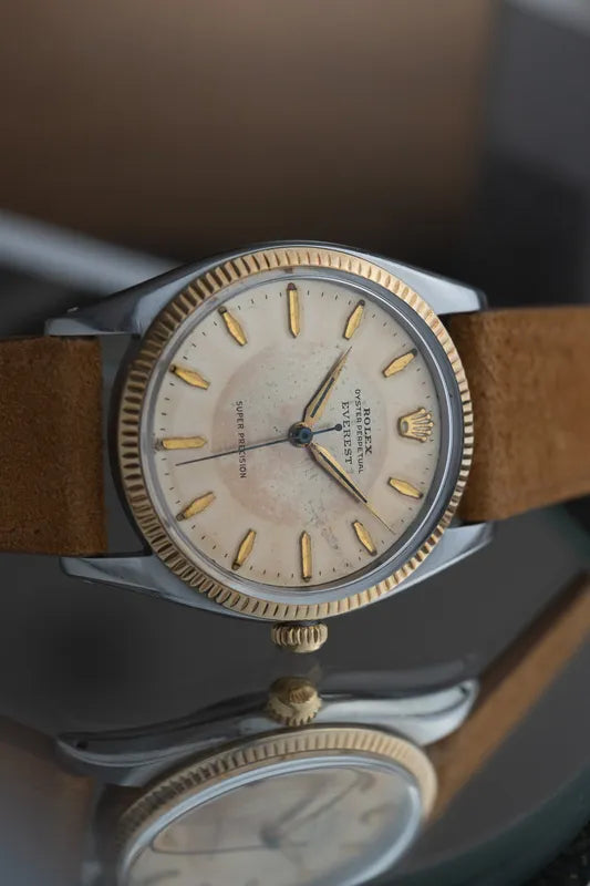Adorned with a rare tropical 'bullseye' dial bearing the distinguished 'Everest' name, this timepiece is a coveted find for collectors and enthusiasts alike.