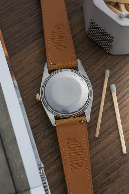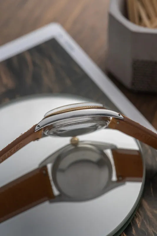 The warm, aged patina of the dial adds a unique charm, accentuating the allure of this classic Rolex model.