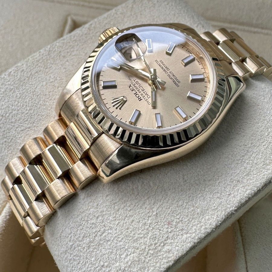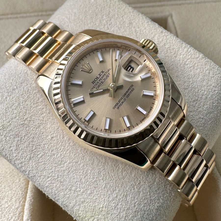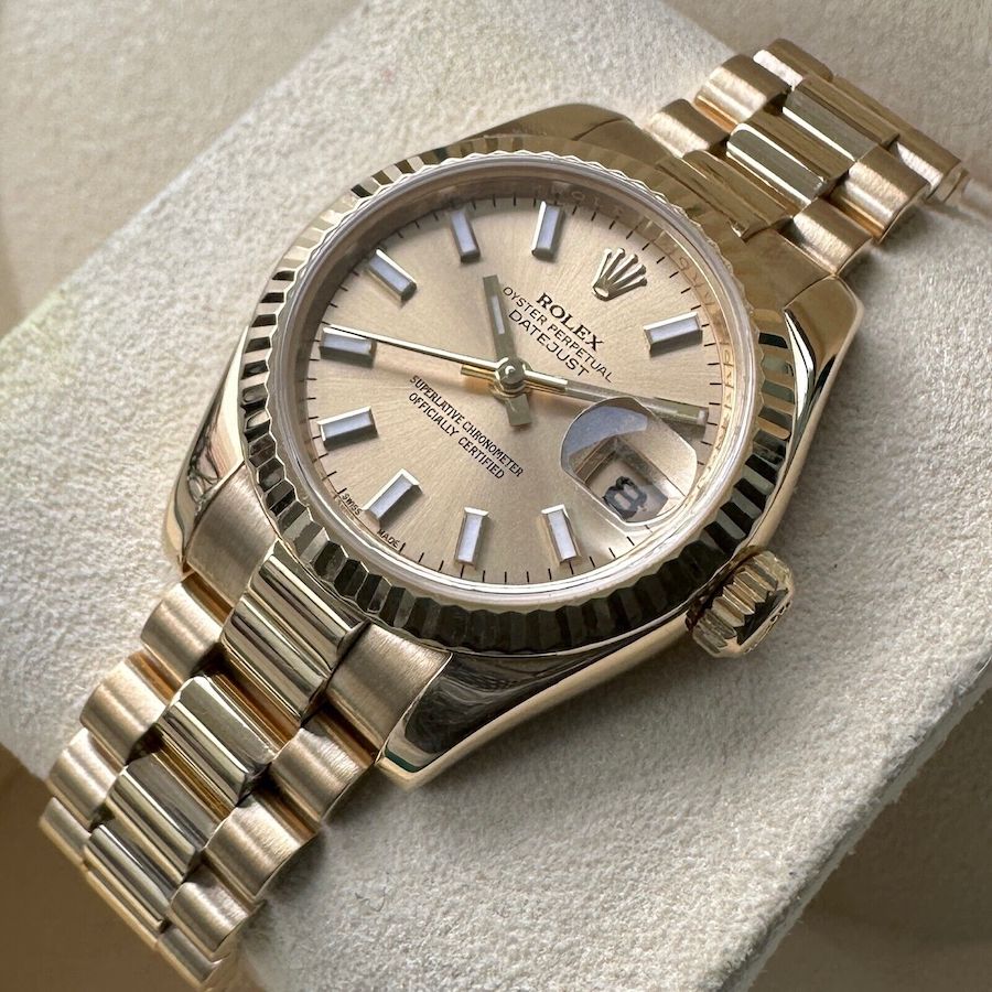 Available for sale is a ladies Rolex president 26mm which has been freshly polished and serviced by our watchmaker. It is a nice honest example of a president which is ready to be worn! The serial on this watch begins with Z dating this watch to 2007. It is a nice fresh example, why purchase a new one when this a fraction of the price!