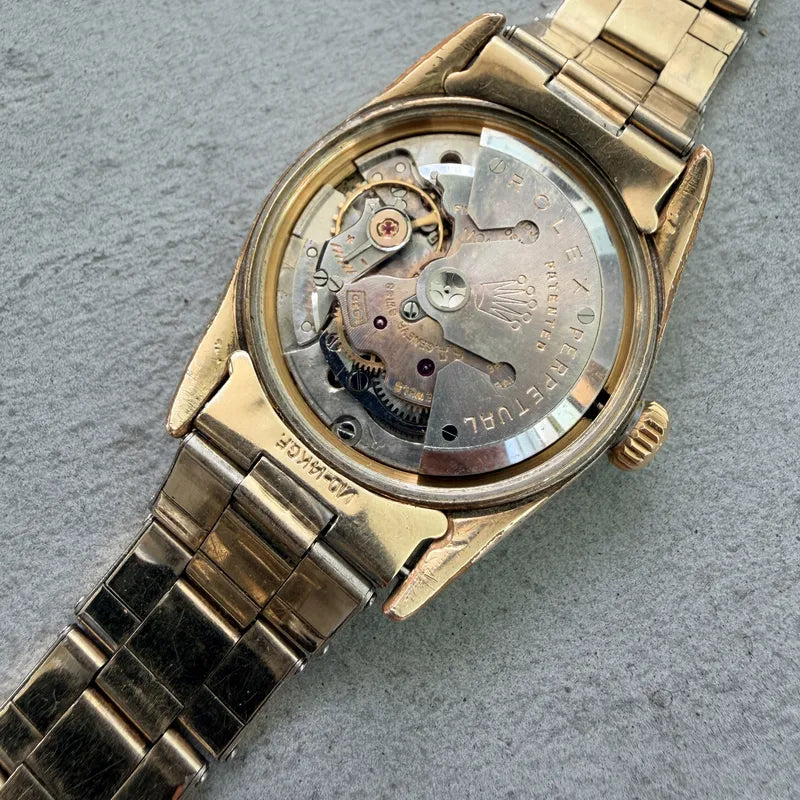 Inside beats Rolex’s revered 1030 butterfly movement, a highly sought-after caliber celebrated for its reliability, engineering beauty, and pivotal role in the brand’s mid-century mechanical evolution. Recently serviced by our watchmaker, it runs with the smooth precision that made the 1030 a legend among collectors.