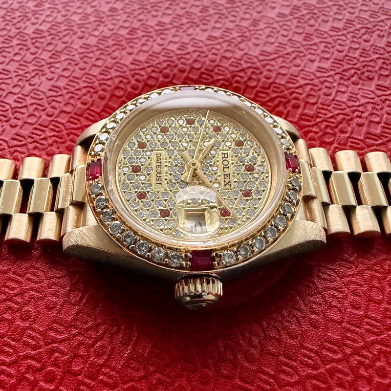 Rolex President Solid Gold 69178 Stunning Ruby diamond dial + Ruby Diamond Bezel