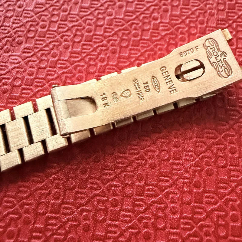 Beyond its aesthetic beauty, this solid gold Rolex presents remarkable value at this moment. The intrinsic value in the 18k gold, combined with the rarity of its unique dial and gemstone bezel, makes it an exceptional piece.