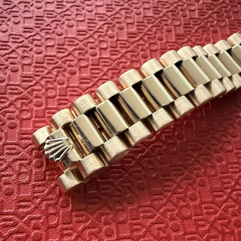 Encased in the graceful 26 mm case and paired with the iconic President bracelet, this watch not only feels elegantly proportioned on the wrist but also exudes a quiet confidence. The automatic movement and Cyclops date cycler at 3 o’clock combine Rolex’s legendary functionality with heirloom-grade design.