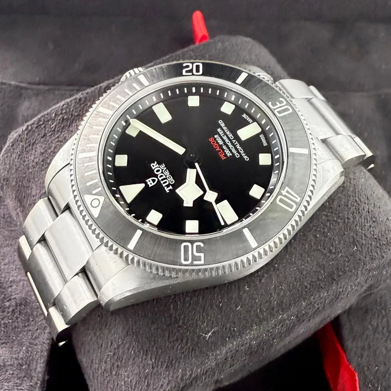This Pelagos comes complete with an additional rubber strap, offering versatility and comfort for any occasion. Accompanied by its original box and papers, this watch is a testament to Tudor’s commitment to quality and precision. Whether you're an avid diver or a collector seeking a bold yet practical timepiece, the Tudor Pelagos is a standout choice that combines functionality with timeless style.
