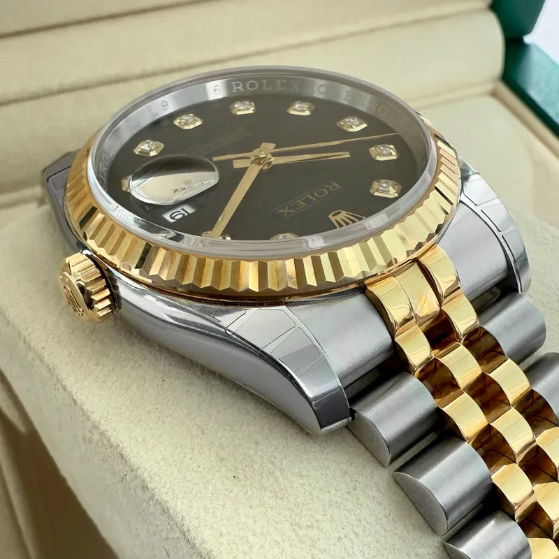 - Dial/Hands: Original Rolex black jubilee diamond dial is stunning brand new condition. Hands are in brand new condition.